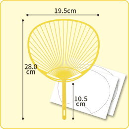 うちわシールは一般的によく使用されるA4サイズの用紙となっております。上質紙(一般的なコピー用紙に使用されている紙)なので、クレヨンや色鉛筆で手描きしたり、Excelなどのデータをプリンターで印刷することも可能です!デザインができたらうちわシールをうちわ骨に貼るだけで簡単に作成ができます!